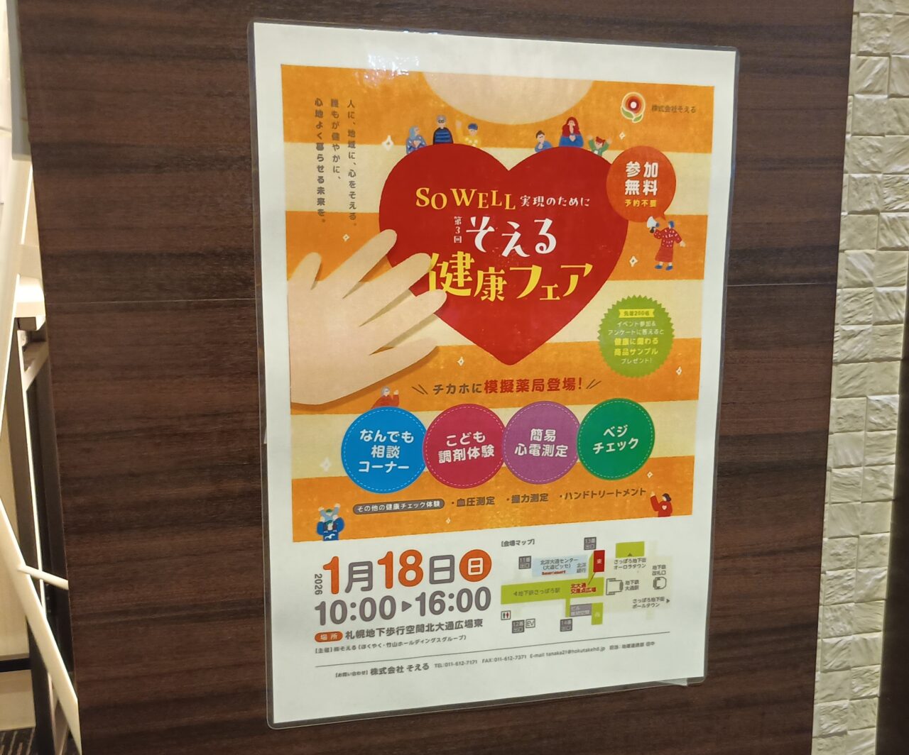 【札幌市】1月18日(日)札幌地下歩行空間北大通広場東で第3回「そえる健康フェア」が開催されますよ。