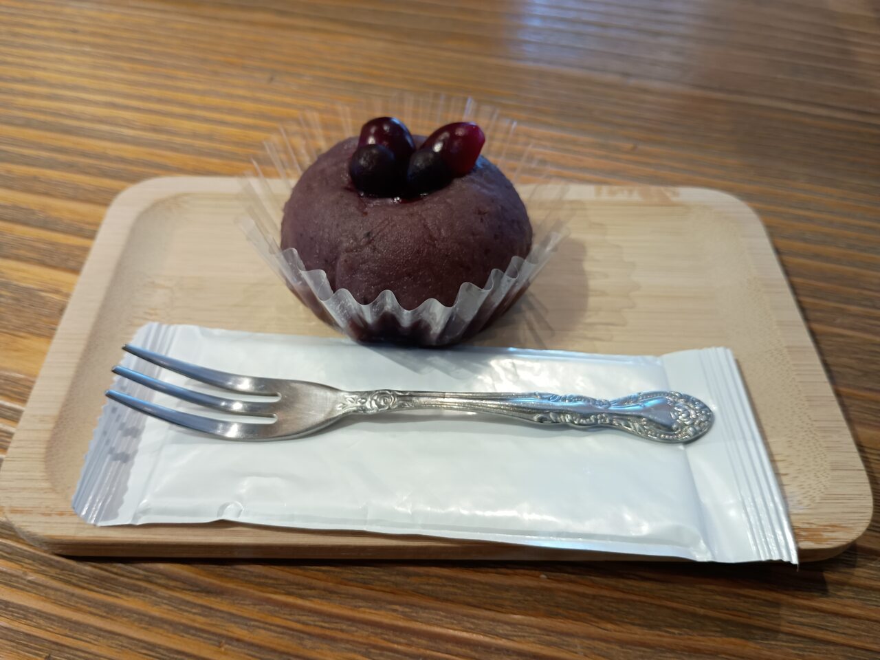 「ベリーハッピー」というベリーののったおはぎも食べてみました。酸っぱさと優しい甘さのバランスが絶妙です。