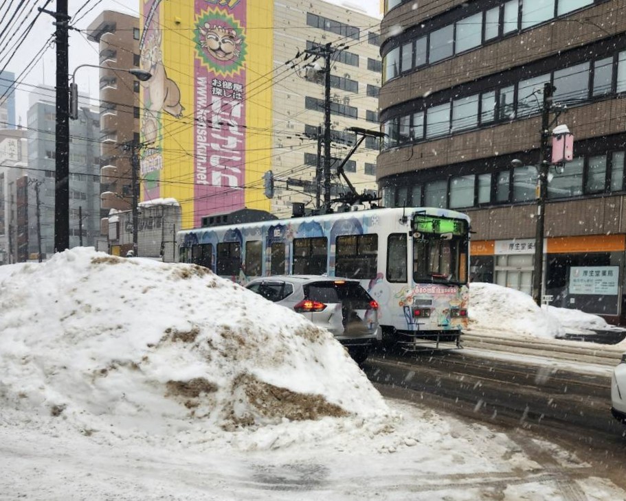 雪ミク電車2026」が今年も運行していますよ。「雪ミク」でラッピングされた車両は2026年3月22日(日)まで運行するそうです。車両には「しあわせパティスリー」をテーマにしたデザインがラッピングされ、車内には雪ミク関連のポスターが掲出されているそうですよ。また通常車両のアナウンス音声に替えて、初音ミクのソフトウェアのボイスを担当する声優の藤田咲さんの音声で運行しているそうです。乗車中も特別感たっぷりですね!雪ミク電車の運行時間はおおむね7:00~21:00の間になります。こちらから雪ミク電車の時刻表を確認することができますよ。なお、天候等による運行時刻の変更や、車両点検等により運休になる場合もあるそうです。ちなみに私が雪ミク電車を発見したのは8:40頃の市電中央区役所前駅でした。甘くて幸せな気分がふわっと広がる、パティスリーをモチーフにしたデザインの市電を見かけると、何かいいことがありそうな気持ちになりますね!みく気になる方はぜひチェックして、雪ミク電車との出会いを楽しんでみてくださいね。